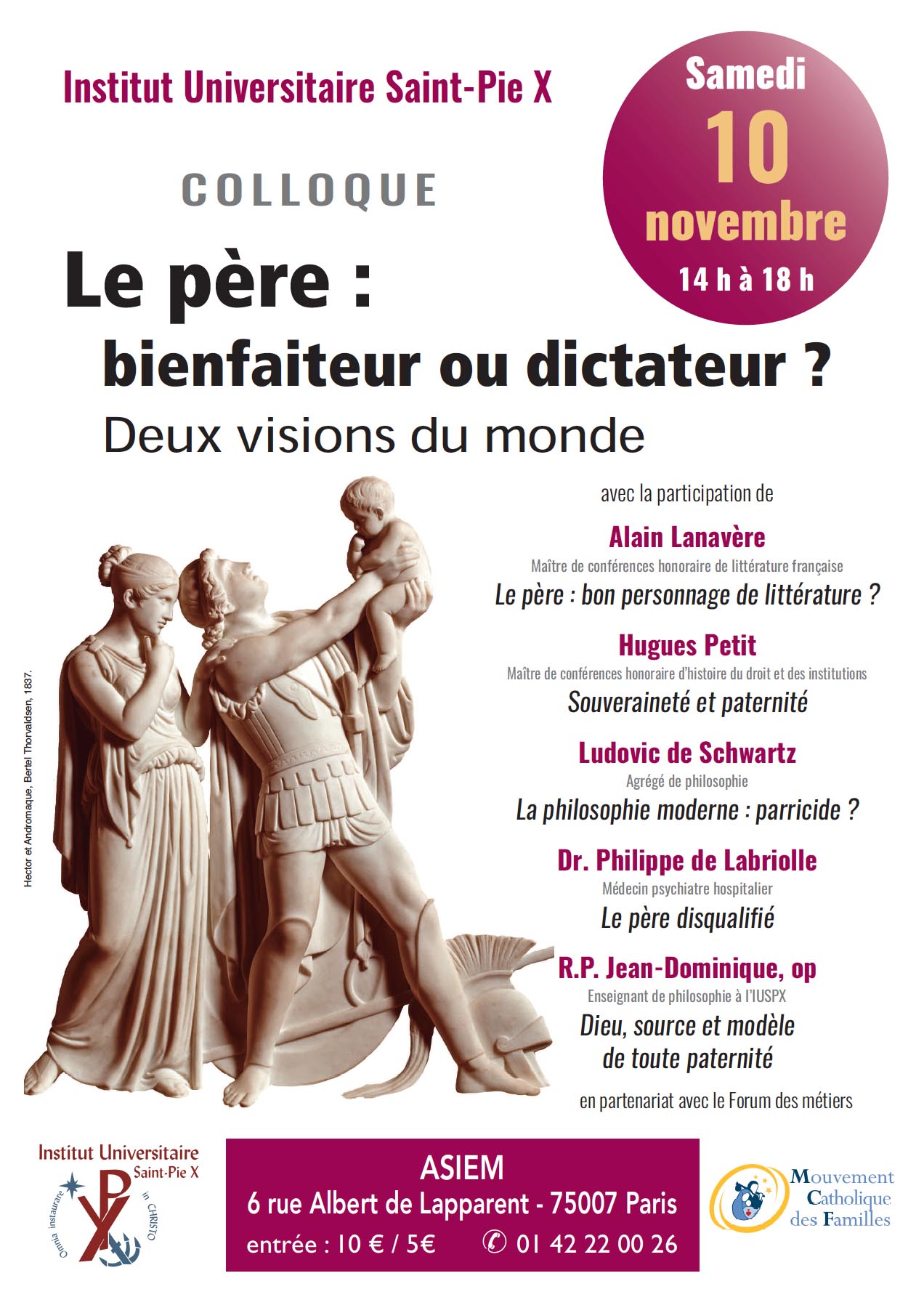 Présent au forum pour présenter les métiers accessibles avec une formation littéraires, l'IUSPX est partenaire de l'événement et organise sur place son colloque universitaire annuel qui, cette année, avait pour thème : le père, bienfaiteur ou dictateur ?
