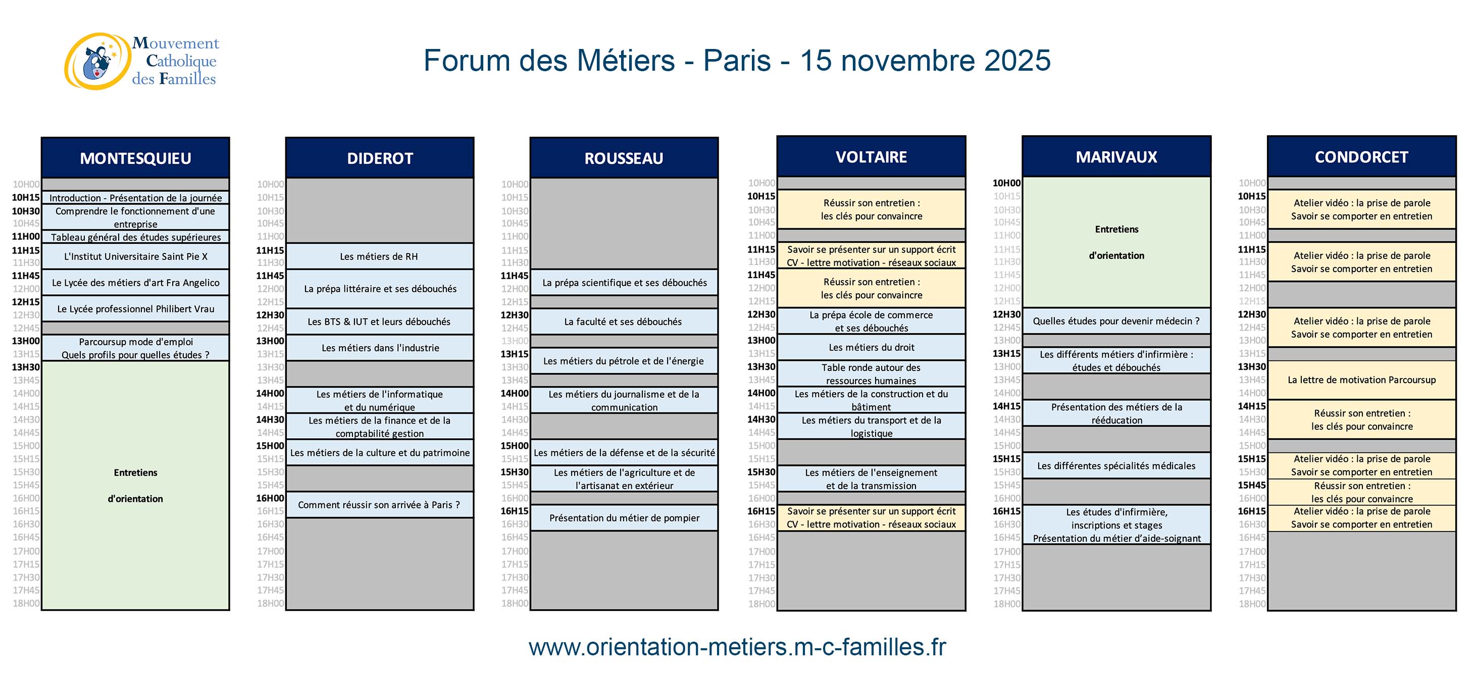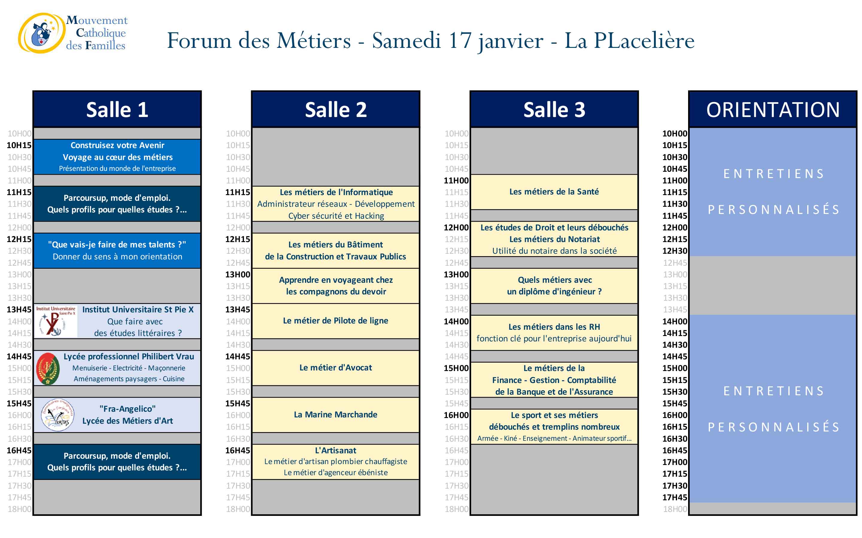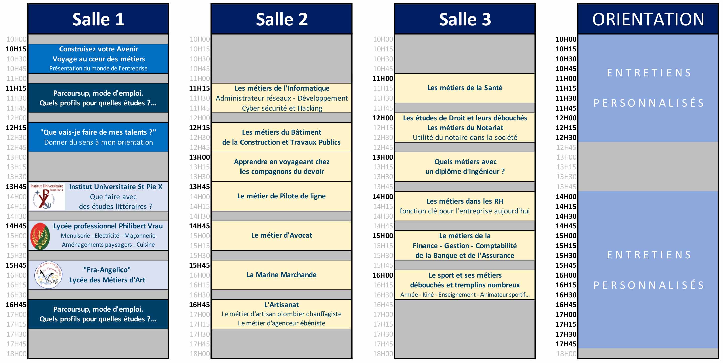 Au programme : tests et entretiens personnalisés avec nos conseillers d’orientation, ateliers RH, présentations de métiers et rencontres avec les professionnels, conférences sur Parcoursup et sur l'orientation.